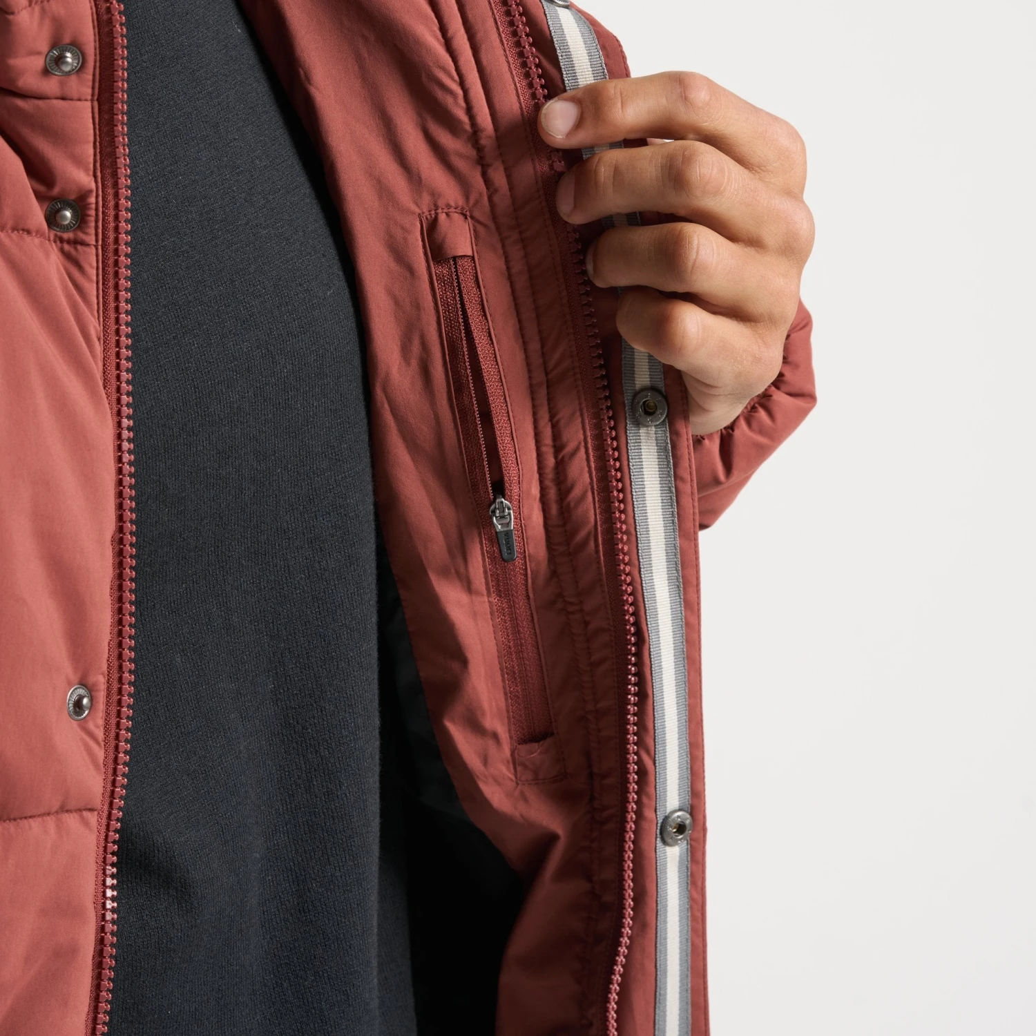 It can get rough out there, so we made the Langley with extra protection. It’s made from a performance woven fabric that is coated for water resistance. Filled with a lofty insulation to keep you warm, including inside the hand pockets. This insulated jacket was built for cold climates. We included a hidden interior phone pocket, an adjustable hood, and storm flaps for extra protection, because we got you. Great for travel and everything outdoors.