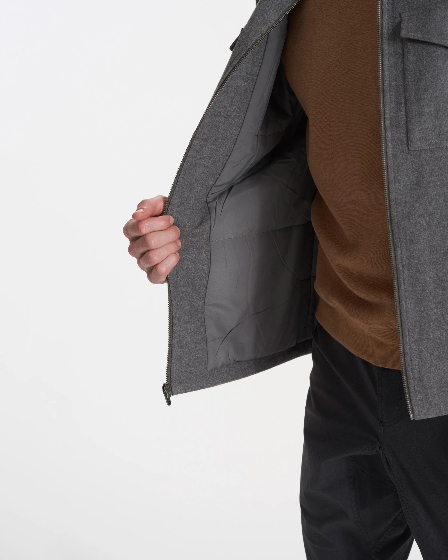 Winter warmth, sophisticated. The Ridgeline is a cold-weather jacket built with recycled blend wool and PrimaLoft™ Eco insulation. Chest flap pockets and side welt pockets offer structure, storage, and everyday wearability.